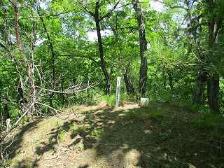 | 4のピーク。こちらも狭隘な地形である。 | 2郭にある墓石。 |