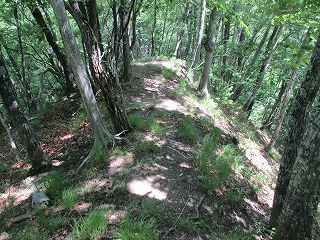 | 3であるが、尾根上の狭隘なピークにすぎない。 | 4に続く尾根。両側は断崖地形となっている。 |