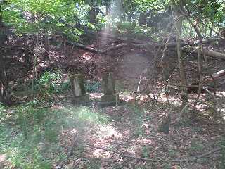 | 1郭内部。この城で郭らしいのはここと、下の2郭くらいである。 | 2郭には墓石がいくつかあった。 |