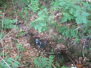| 道路脇にある堀。 | こちらも堀。底には水が溜まっている。 |