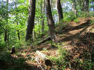 | 再び1郭に戻って北側の尾根へ。途中に浅い堀切が3本ある。。 |