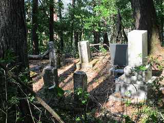 馬屋の窪の西側の上にも平場がある。といってもちゃんとした削平はされておらず、やや傾斜した地形になっている。この西端の部分には墓地があった。下の集落からここに登ってくるルートがあるのだろう。