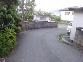 台地の南端部には墓地があり、そこまで車道が付けられている。ということで、南端辺りにナビをインプットしたら、いったん東側の下に回り込み、東下の民家の脇から台地に上がる道を案内された。ところが、東側から上がる道は、車で上がるのは難しそうだったので、もう一度北側に回り込んで、中央自動車道を越えて、北側からまっすぐにアクセスするルートで接近していくことにした。もっとも、こちらも道は狭く、小型車の車幅ぎりぎりといったところである。おそらく軽トラが通ればいいという発想で付けられた道なのであろう。