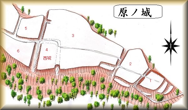 飯沼城の西側300m、上郷駅のすぐ北東側にそびえる比高20mほどの台地全体が原ノ城の跡である。かなり規模の大きな城郭である。