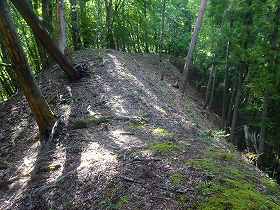 この先の部分に2郭があったのではないかと想像するのだが、よく分からない。1郭だけの単郭の城郭であった可能性もある。