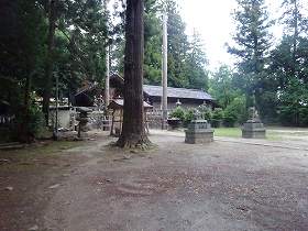 土塁の手前が一段高くなっており、そこに諏訪神社の社殿が造営されている。なかなか立派な社殿である。