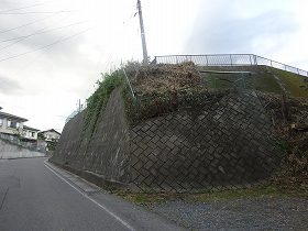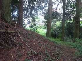 | 東方から見る城址のある台地。 | 1郭南端の城塁。 |
