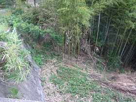 | その北側下には数段のテラス状の段々がある。 | その東側の傾斜した平場。 |