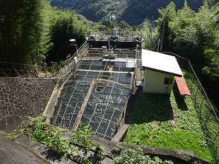 | 東方から遠望する荒城。 | 城の下の立石水力発電所。 |
