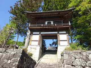 | 立石寺の山門。ここから北側に登って行ったところが城址となっている。 | 3郭から見る2郭方向。 |