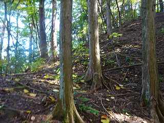| 東側の寺沢川方向から見た城址。 | 西側の堀切跡。 |