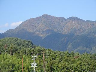 | 南方から遠望する虚空蔵山城。比高は500m以上ある。 | |