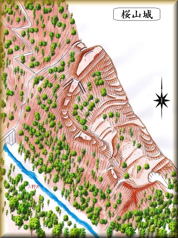 桜山城の1つ1つの郭はそれほど大規模なものではないが、なにしろ数が多いので、かなり手間暇をかけて造成した城郭であるのは一目瞭然である。鐘撞堂山とも呼ばれている山であるが、単なる鐘撞のための砦といったレベルのものではなく、堂々たる支城として築かれ、維持されたものであったと思われる。