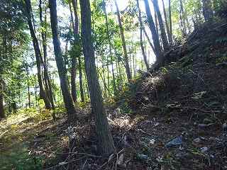 1郭から山稜は2つの尾根に分かれており、そのそれぞれに尾根上を削平した小規模なテラス状の郭を多数配置している。しかし、今回は道に迷って余計に時間を費やしてしまったことと、あまり麓近くまで降りて行って、キノコ山に入っていることをとがめられるのも嫌なので、ここまでにしておいた。
