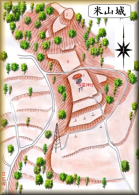 立石寺の北東200mほどのところにある寺尾神社のある高台が米山城の跡である。