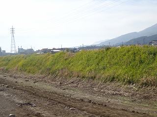 ということで、西側の国道から台地先端部を目指して進んで行く。台地の縁部まで車道は続いているのだが、途中から路面は未舗装になって行くので、車は途中の余白に停めて歩いて行くことにした。