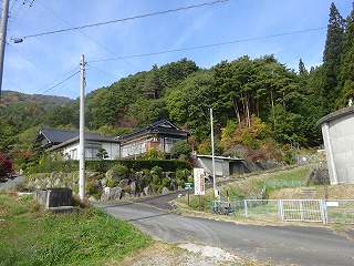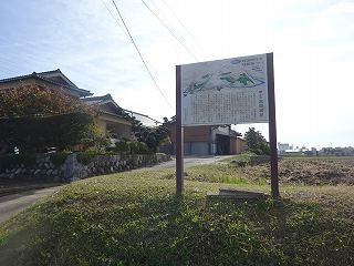 岩間2865番地辺りが岩間城の跡であり、北側の道を走っていると、道路脇に案内板が立てられているのが目に入ってくる。この辺り一帯に岩間城が存在していたということである。
