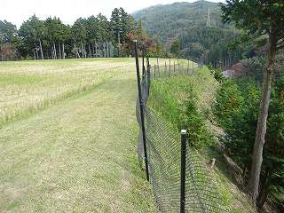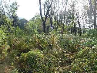 | 北山城のある山稜部。 | この奥が城址だと思うのだが、先に進めない。 |