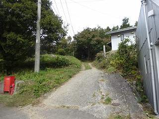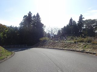 北山城のある部分は南西側の下からは比高50mほどの台地先端部となっている。というわけで、くねくねと蛇行する坂道を通って台地上に上がって行く。さらに、上がったところで台地内部に入っていく道に進んで行く。