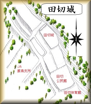 田切城は、飯島氏と対立関係にあった多切氏の居城であったと伝えられている。室町時代初期の嘉慶元年(1387)の頃のことである。