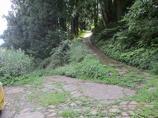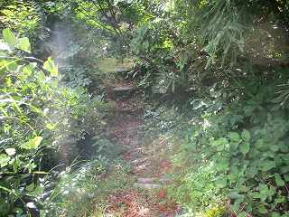 1郭からは参道があったので、降りはこの参道を使って降りて行った。ところが入り口付近がヤブになっていたため、下からは参道入口が分かりにくくなってしまっていた。入り口に案内表示も何もないので、知らないと発見するのは難しいのではないかと思われる。
