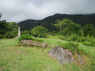 1郭は長辺が30mほどの長方形の区画となっており、ここに大きな城址標柱が立てられていた。途中までの案内表示と言い、この城址は地元の人に大切にされているようである。