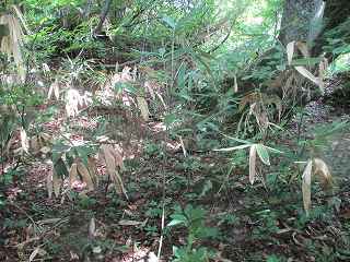 しかし、こちらもけっこうなヤブでなかなか下に進めない。それも背の高い笹薮のため、たとえ冬場になったとしてもヤブが収まることはないであろう。場所によっては全身が笹にからめとられてしまって、なかなか先に進むこともできなかった。