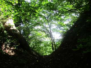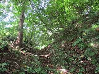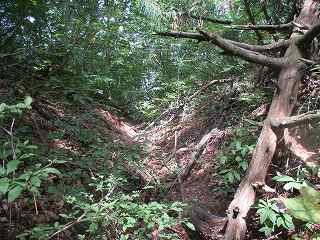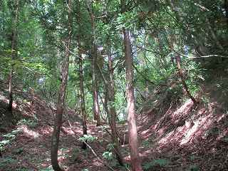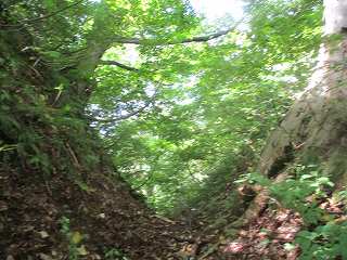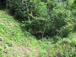| 二重堀切の二重目こちらは薬研堀である。 | こちらも二重目の堀切の側面部。 |