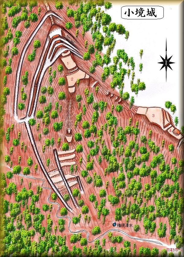 というわけで、小境城の遺構は見どころはあるものの、ヤブがひどくて城内を踏破するのはかなり困難である。こんなにつらい思いをすると分かっていたら、きっと訪問しなかったであろう。ということで訪問したことに後悔をしてしまったのだが、それなりに面白い城郭ではあった。