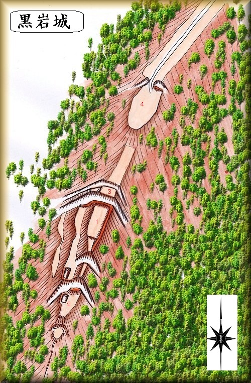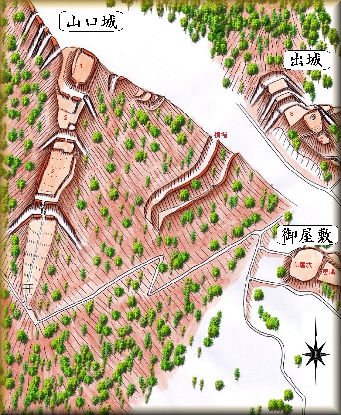 そんなわけで、城内まで到達することはできなかった。それでは悔しいので、宮坂氏の図面を基にした鳥瞰図を掲載しておく。
