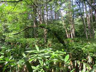 遊歩道もちゃんとした道なので、夏場であっても普通に歩くことができた。ただし、遊歩道以外の部分は、夏場ではちょっと入れないようなヤブ状態であった。雪国のヤブは雪の重みで逆茂木状態になっていて厳しい。