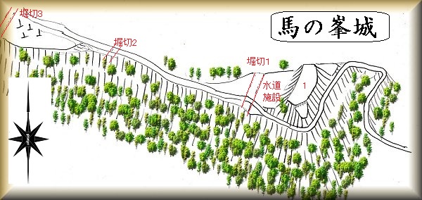 | 馬の峯城は、中条城の城主であった今清水氏の居城であったという。今清水氏は後に中条城を築いて移転していくことになるので、この城は比較的早い時期に廃城となってしまったものと思われる。 | |