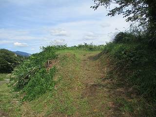 | 2郭城塁の側面部。 | 1郭内部。きれいに草刈りがされていた。 |
