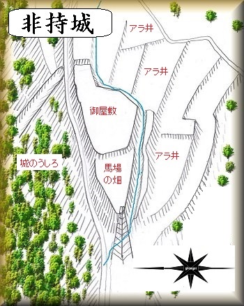 非持城の城主は非持三郎と言われ、享禄・天文年間の頃、ここに居住していたという。