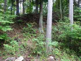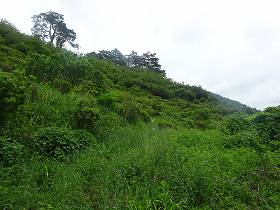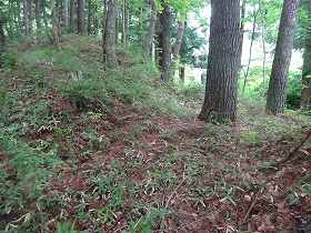 | 堀切を側面から見たところ。 | さらにその先にも2本の堀切があったらしいが、現在では削られてしまっているようだ。 |