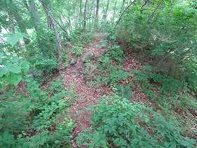 この先の2郭との間には堀切があって、そこに橋が架けられている。橋があるために堀切の存在に気が付くのであるが、堀切そのものはヤブ状態になっており、内部の様子はよく分からない。しかし、深さ2m程度の小規模なものであるようである。