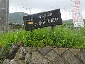 城の中心部は直径30mほどの円形の郭である。台地上まで登って行くと、「←100m左 南北朝時代史蹟 大徳王寺城址」と書かれた案内表示が出ている。そのまま車で進んで行くと、大きな案内板が設置されており、その脇に駐車スペースもあった。案内板には「南北朝時代信濃における大混乱」という表題で、宗良親王に関する説明が書かれていた。
