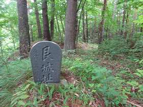 | 1郭入口に立てられた城址碑。 | 1郭土塁。 |