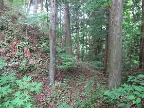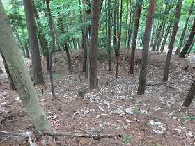 2郭の南端部は堀切となって下方の尾根との間の分断を図っている。この堀切の先は尾根が急に落ち込んでいる。