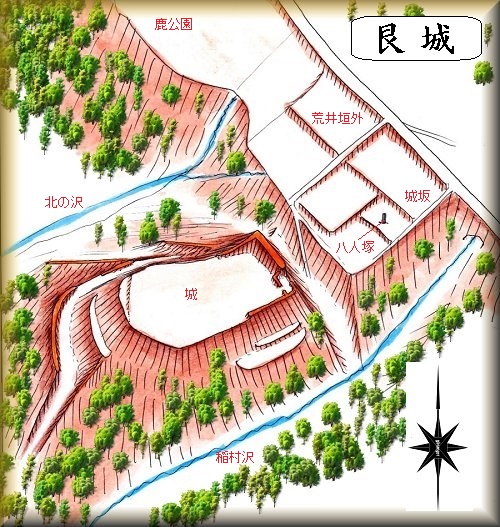 現状ではこれだけの城であるが、南側に上城という地名が残されていることから、南側の民家が立ち並んでいるあたりにも郭が存在していたことが推定できる。だから、旧状を知ることは難しいが、かつては広大な城域を誇った城であったと言われている。