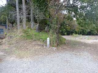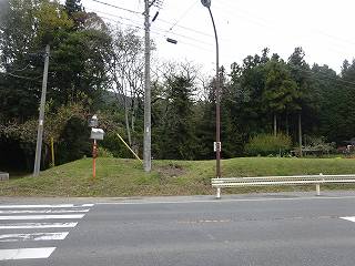 この北側の道路が堀跡であったと思われるのだが、現状では堀はすべて埋められてしまっており、わずかな段差が見られるのみである。もともと城内側にあった土塁を崩して埋めてしまったものなのであろう。現状では土塁も見られなくなってしまっている。伝承によると、土塁はかつては主郭の全周を巡るようにして配置されていたというが、現在では痕跡も認められなくなってしまっている。