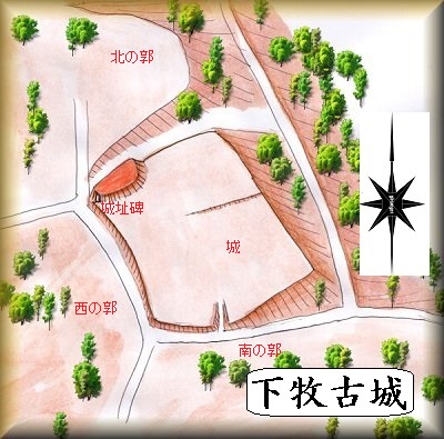 下牧古城の城主は下牧氏であった。ところが下牧氏は応永7年の大塔合戦において小笠原長秀側について敗れてしまう。そのため下牧氏も没落してしまったものと思われる。