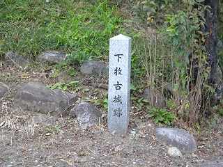 伊那市西春近下牧9205のお宅辺りが、下牧古城の跡であり、北側の土塁の手前に城址碑が建てられている。