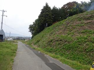 この4郭の東側には墓地が造成されており、この部分の土手は東側の離れたところからでも、いかにも城塁らしく見えている。