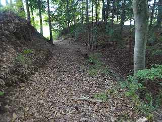 | 北側の城塁。高さはあまり高くない。 | 鞍部から東側の土手を見たところ。 |