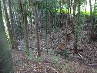| 3郭との間の堀切には幅広の土橋がある。 | 3郭内部。 |