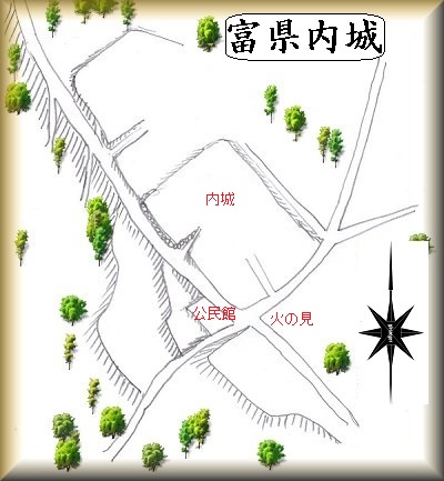 伊那市富県7658番地の「宅老幼所きらきら福地」の辺りが内城と呼ばれているところである。