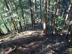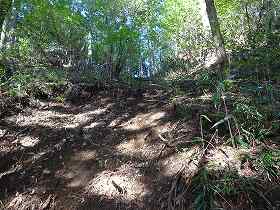 これを登って尾根上に出ると、後は比較的傾斜の緩やかな尾根を歩いて行くことになるので、きつい道ではない。しかし、距離はけっこうあるので、時間は30分近くかかることを覚悟しておいた方がよい。