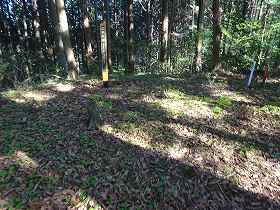 堀切から上がったところが2郭で、ここには「二の丸跡」という標柱がちゃんと立てられている。2郭から南側にも一段低い郭があり、そこにも堀切が掘られている。2郭も郭そのものはそれほど広くはないが、堀切はかなり深く掘られている。