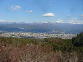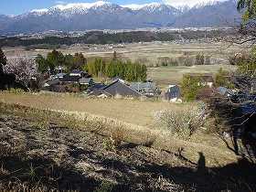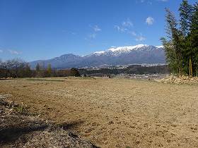 | 1郭内部。南アルプスの山容がよく見える。 | 西側下の腰曲輪。 |